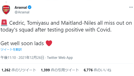 【速報】アーセナル冨安さん、新型コロナに感染してしまう…
