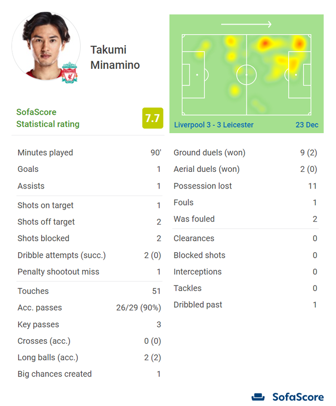 【速報】リバプール南野タキ、レスター戦のスタッツwwwwww