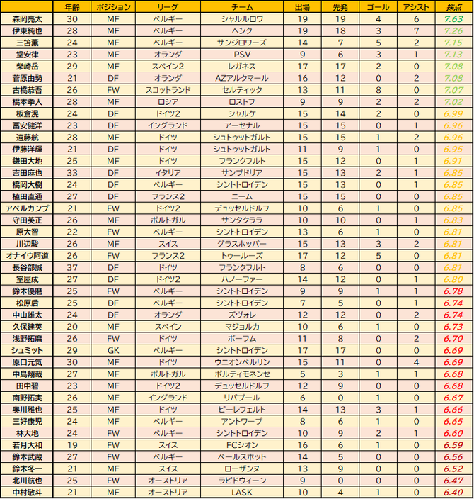 【朗報】日本人サッカー選手(海外組)、活躍度ランキングwwwwwww