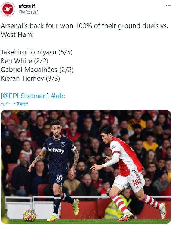 【朗報】アーセナル冨安さん、デュエル勝率100%を記録wwwwww