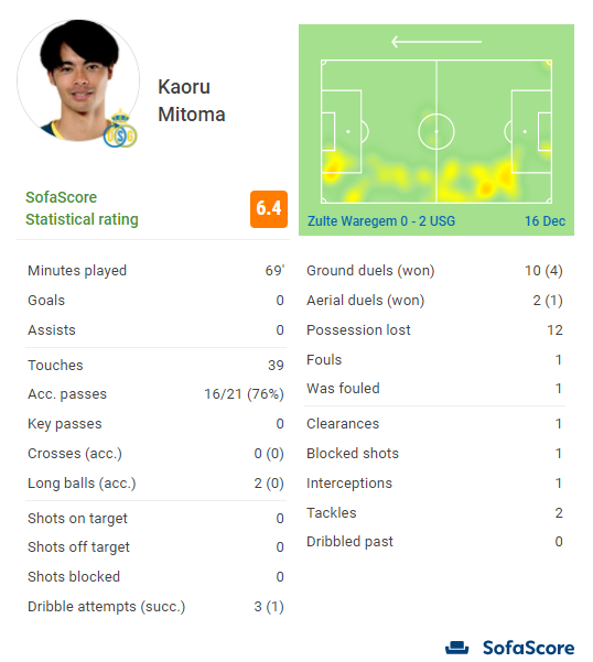 【悲報】ユニオン三笘薫さん、今朝の試合で最低点になってしまう…