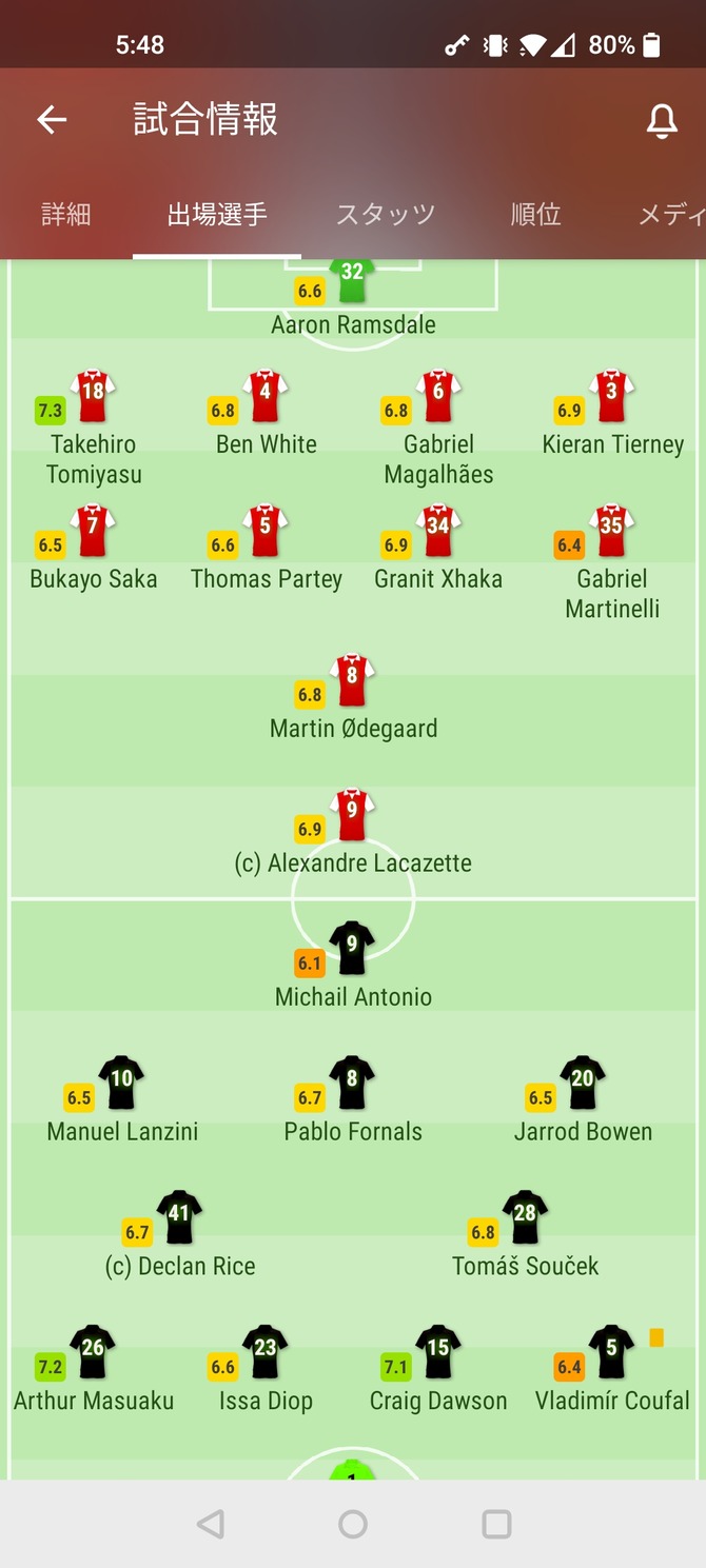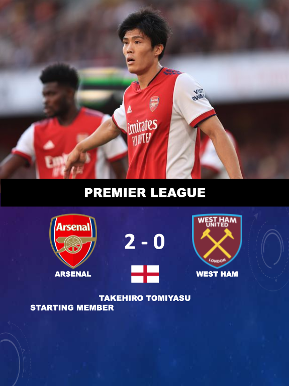 【速報】アーセナル冨安さん、ウエストハム戦前半の採点wwwwwwww