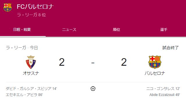 【速報】シャビ監督のバルセロナさん…オサスナ相手にも勝てないwwwwwww