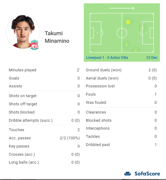 【悲報】リバプール南野タキ…ヴィラ戦のボールタッチ数wwwwwwww