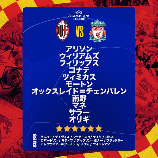 【速報】リバプール南野タキ、CLミラン戦スタメンキターー!!wwwww