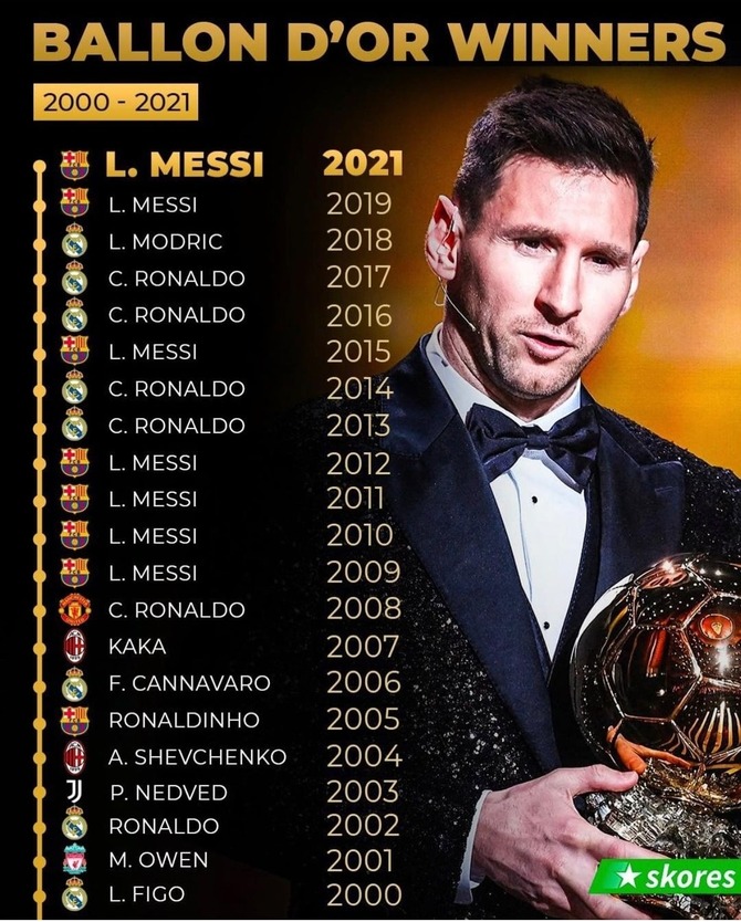 【悲報】過去20年のバロンドール受賞者がこちらwwwwwww