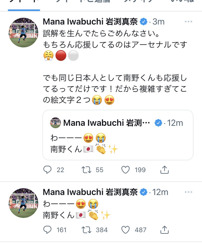 【悲報】アーセナル岩渕真奈さん、リバポ南野タキのゴールを喜んで大炎上wwwww
