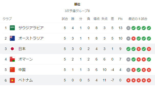 【速報】W杯アジア最終予選…日本を含むグループB組の試合結果wwwww