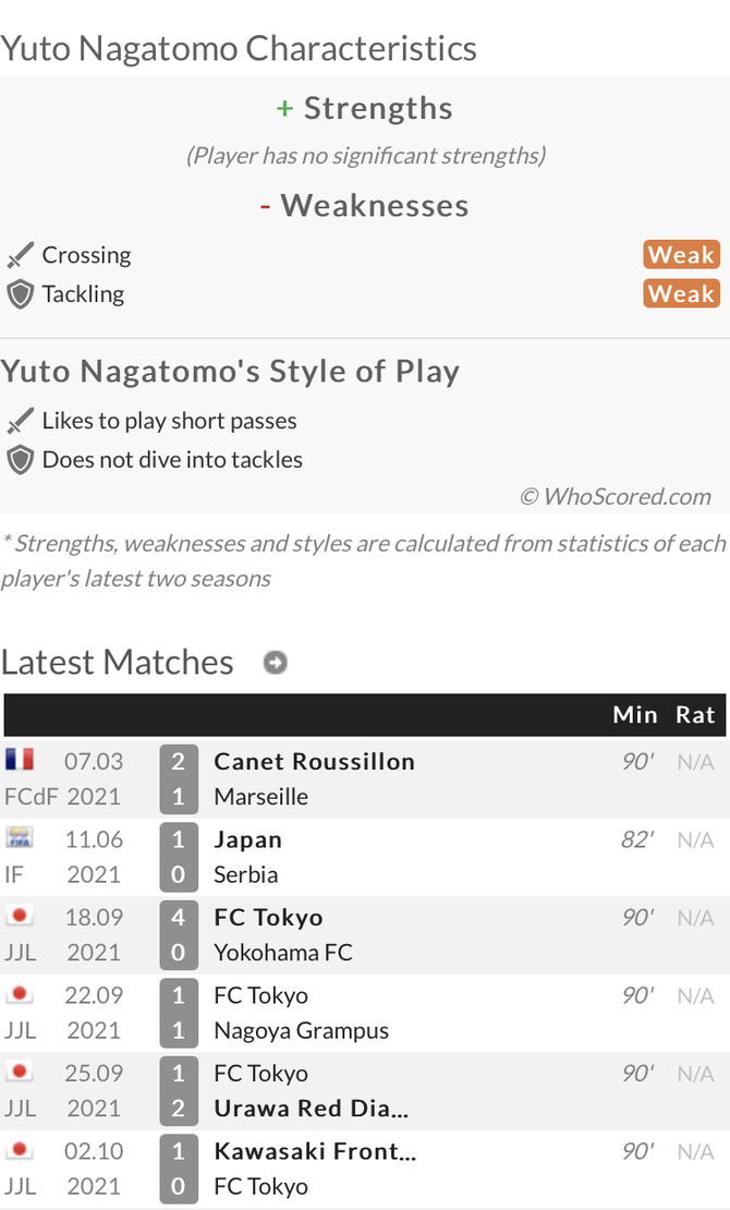 【悲報】長友佑都さん…「長所:特になし 短所:クロス、タックル」だったwwwww