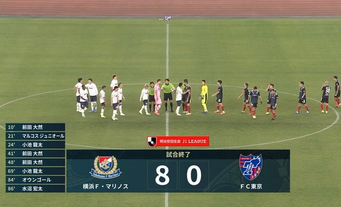【速報】長友佑都出場のFC東京さん、8-0で横浜FMにフルボッコにされてしまうwwwwww