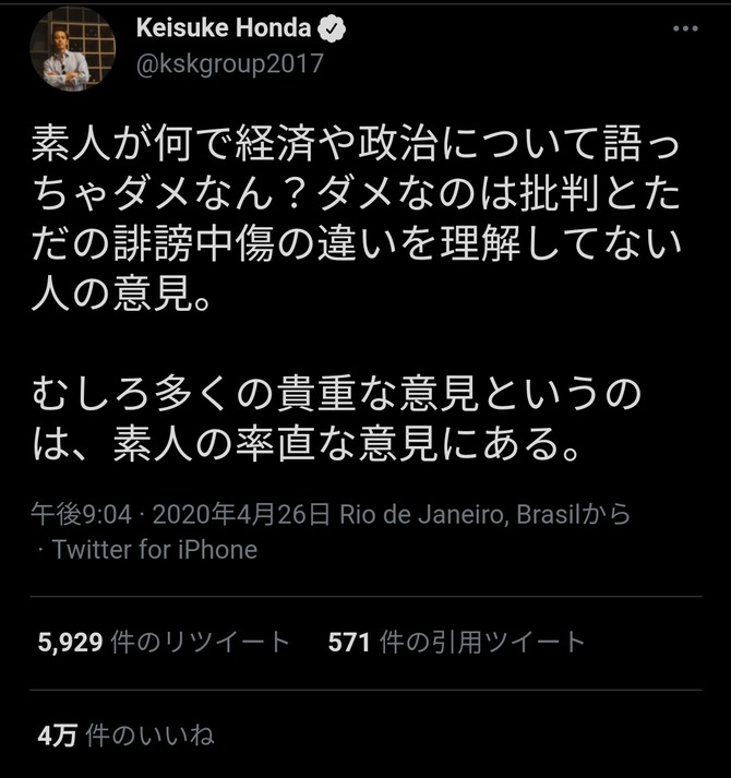 【悲報】ケイスケホンダさん、過去のツイートで論破されるwwwwwwww
