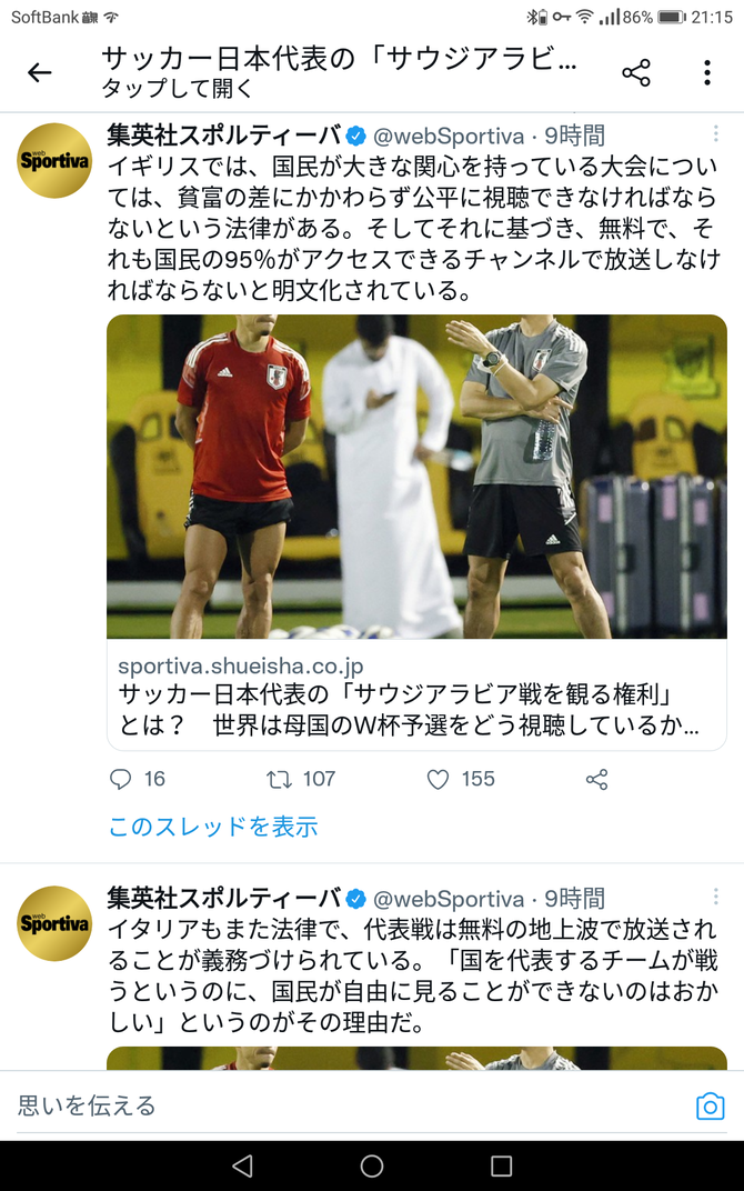 【悲報】日本以外ではサッカーの代表の試合は無料で見れる模様…