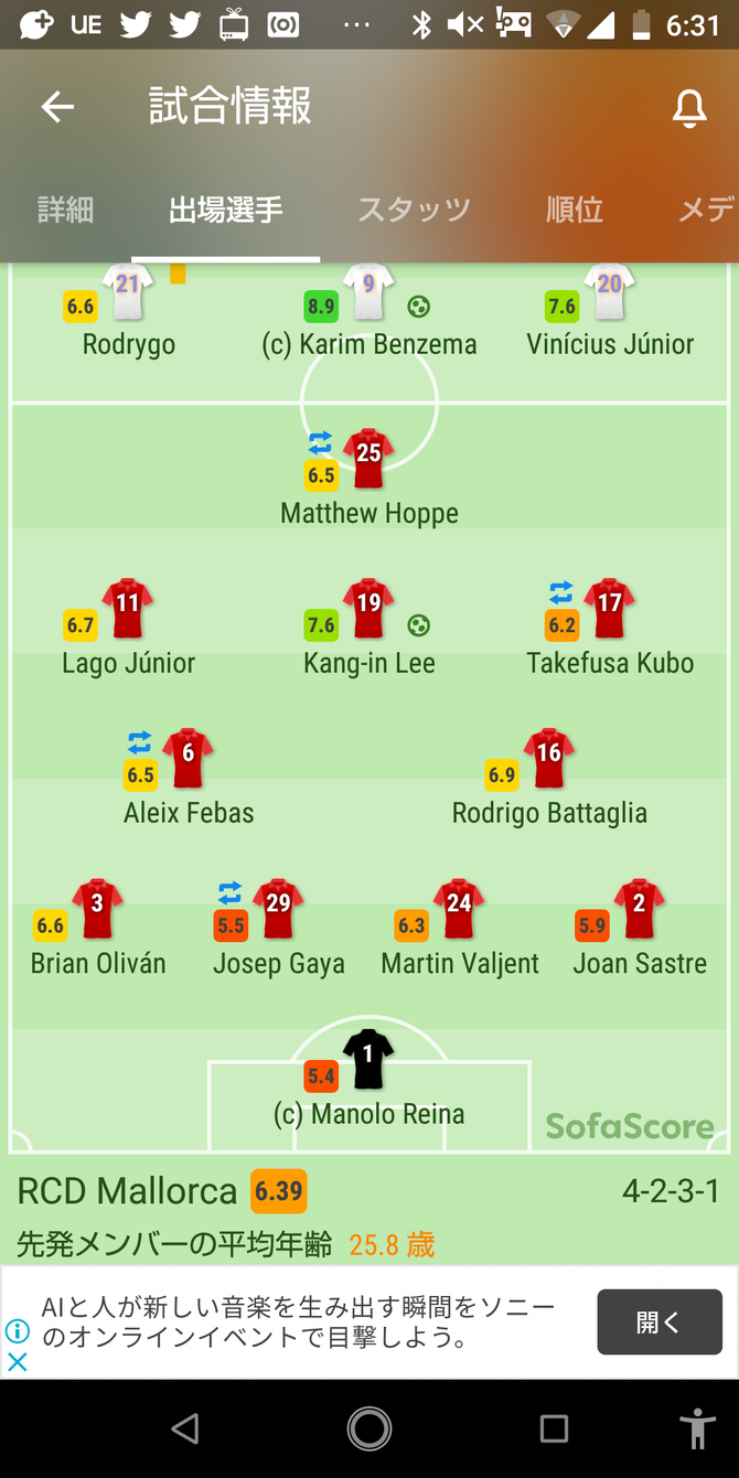 【悲報】マジョルカ久保さん、前半交代したレアル戦の採点…