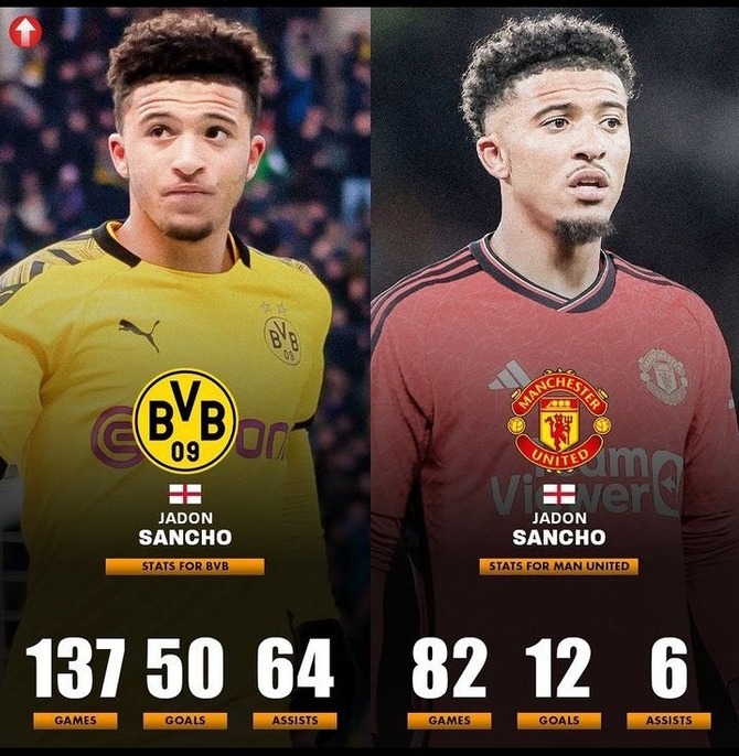 【悲報】ドルト出戻り元マンUのサンチョさん、ドル時代137試合50G64A…マンU時代82試合12G6A←これwwww