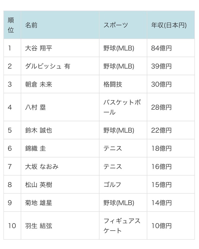 【謎】日本人スポーツ選手の年収TOP10、サッカー選手は1人もランクインせず…一体なぜ