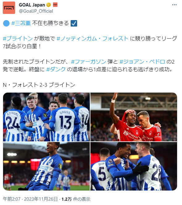 【速報】三笘薫欠場のブライトン、7試合ぶりに勝利キターー!!wwwwww