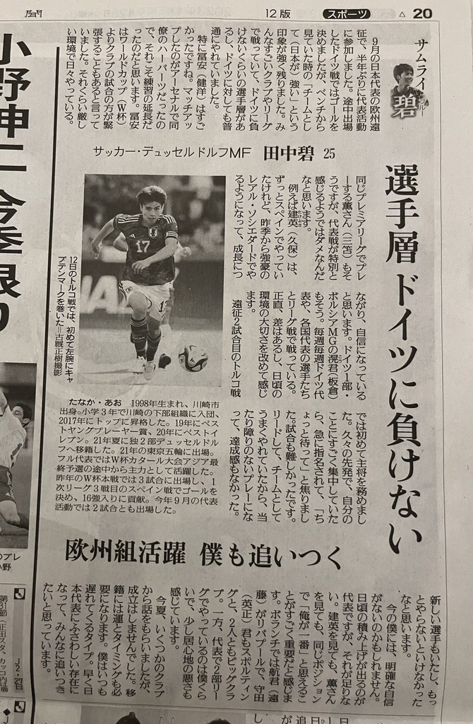 【悲報】ドイツ2部の田中碧さん、日本代表で居心地が悪いと語る…