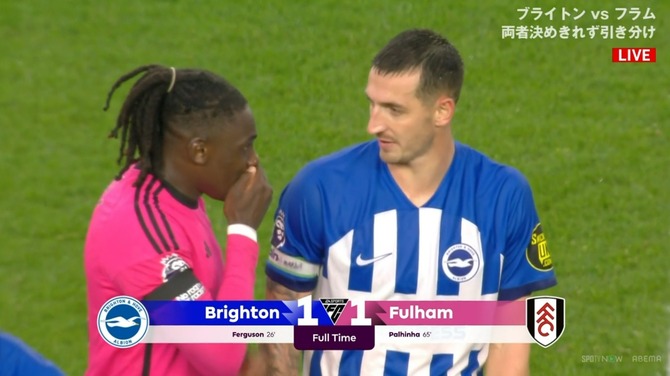【速報】三笘薫出場のブライトン、まさかのフラム相手に引き分けで試合終了wwwwwwww