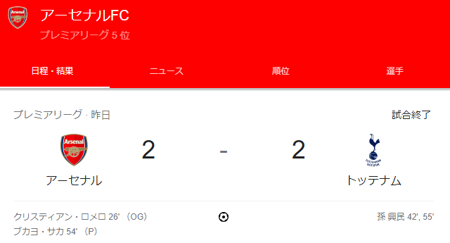 【速報】冨安出場無しのアーセナル、ソンフンミンに2ゴール決められてドローwwwwwww