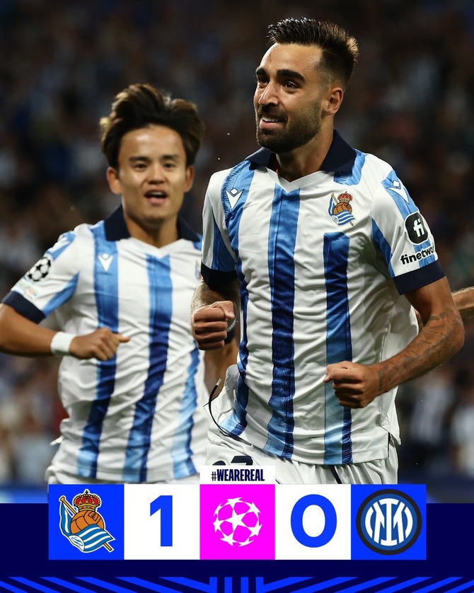 【速報/動画】久保建英出場のソシエダ、なんとインテル相手に先制して前半終了wwwwwwww