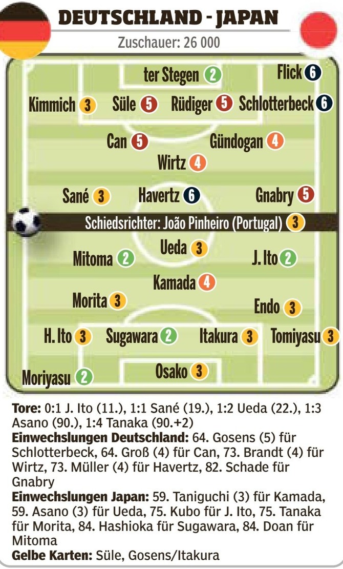 【速報】日本代表vsドイツ戦、現地の採点がこちらwwwwwwwwwwwww