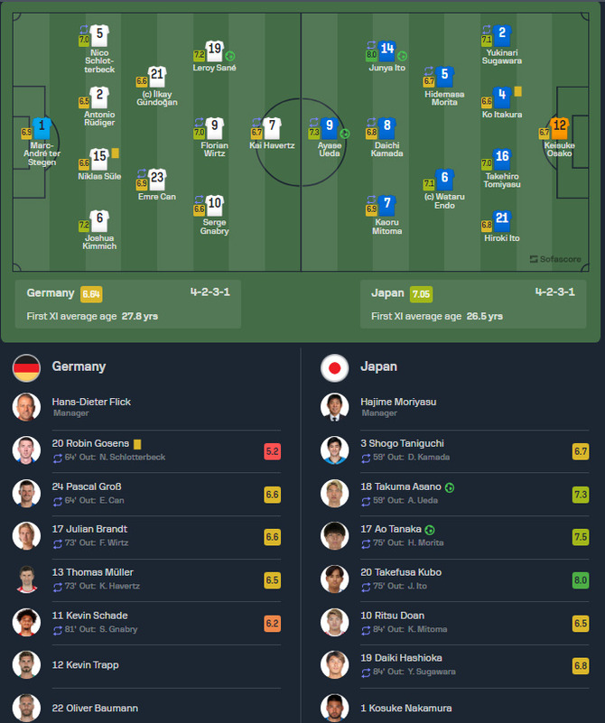 【速報】サッカー日本代表vsドイツ戦の採点wwwwwwwwwwwww