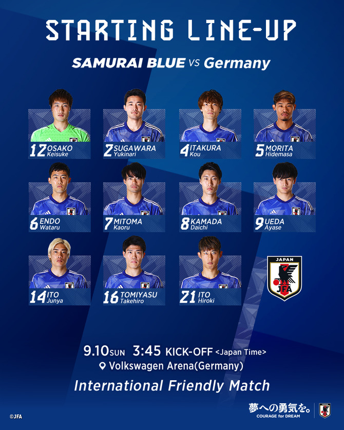 【速報】サッカー日本代表vsドイツ戦のスタメン発表キターー!!wwwwww