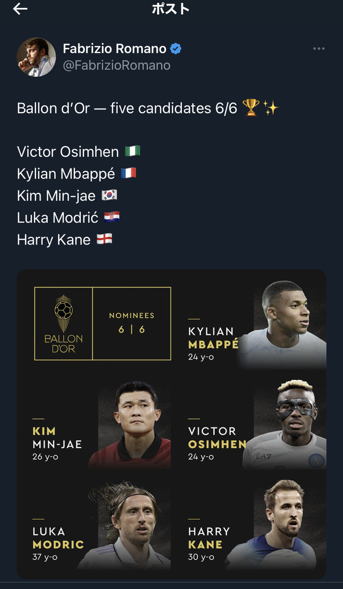 【速報】韓国代表DFキムミンジェさん、バロンドール候補にノミネートされるwwwwwwwwwww