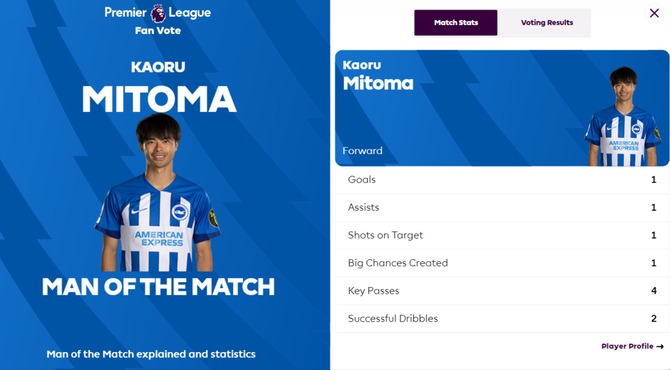 【朗報】ブライトン三笘薫さん、ウルブス戦の採点がヤバいwwwwwwww