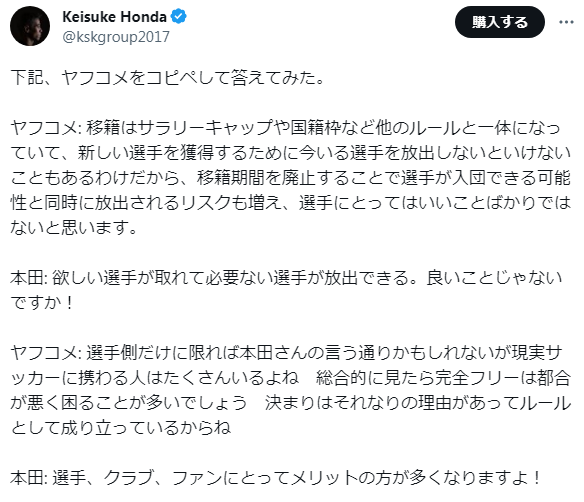 【悲報】本田圭佑さん、FIFAに物申す…「すべての選手がいつでも移籍できるように」