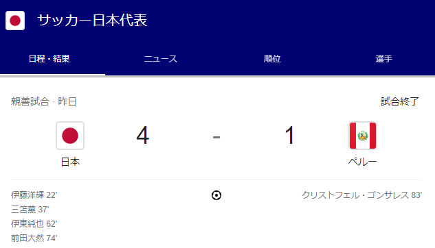 【速報】日本代表4-1ペルー代表、韓国代表0-1ペルー代表←これwwwwwwww