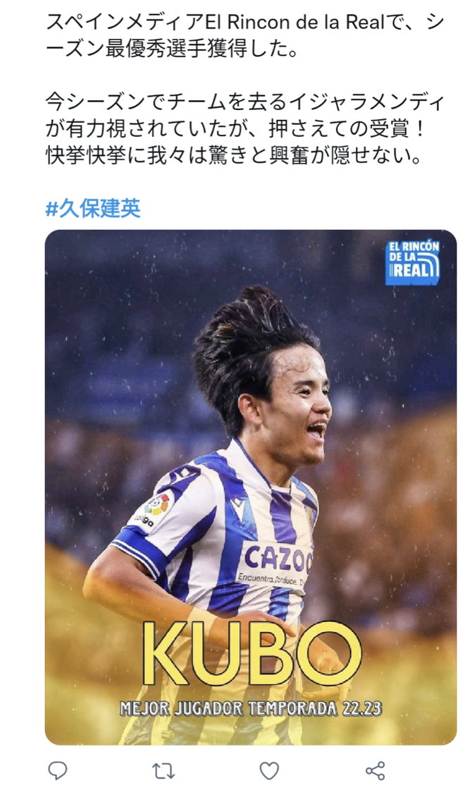 【朗報】久保建英さん、シーズン最優秀選手獲得wwwwww