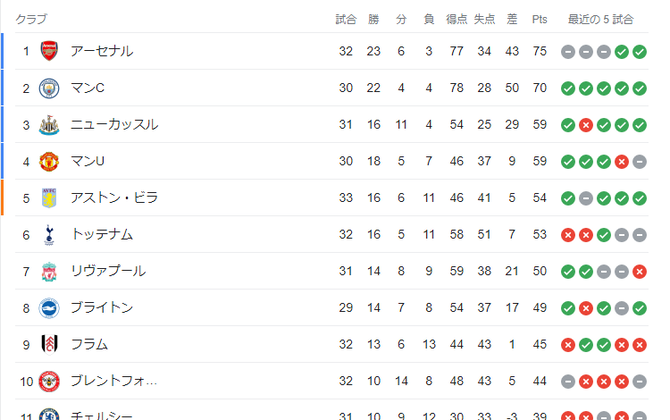 【悲報】プレミアオタ「他のリーグと違ってプレミアリーグの優勝争いは激しい!」