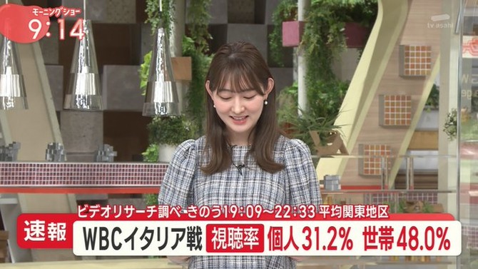 【速報】WBC侍ジャパン…イタリア戦の視聴率48・0%!今年1位&WBC歴代1位更新の5試合連続40%超えwwwwwwww