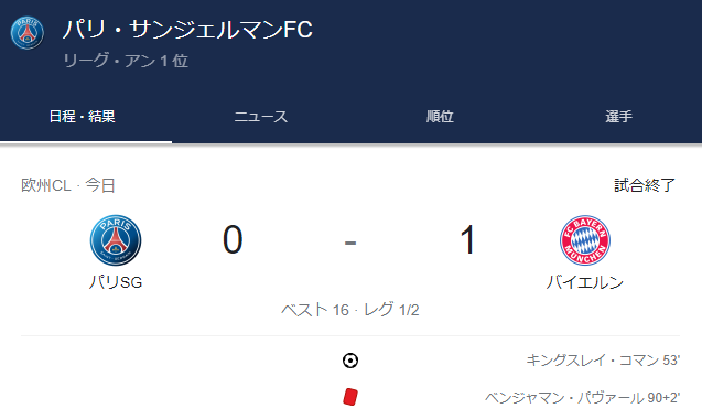 【速報】パリサンジェルマンさん、ホームでバイエルン相手に逝くwwwwwwwww
