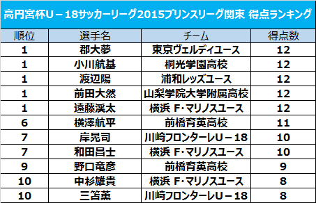 【悲報】三笘薫さん、ユース時代のプリンス関東得点ランクがこちらwwwwww