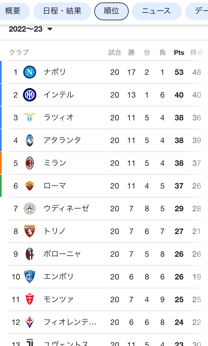 【悲報】リーガ首位バルサ←わかる ブンデス首位バイエルン←わかる セリエA首位ナポリ←???????