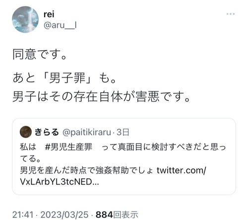 【画像】フェミニストさん、男子を産むことは強姦幇助だと主張「男子罪」制定へ