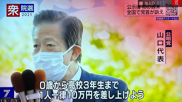 公明・山口代表「0歳から高3まで一律10万円を差し上げよう」⇒ 差し上げる?あなたのお金ではない。国民の血税です。