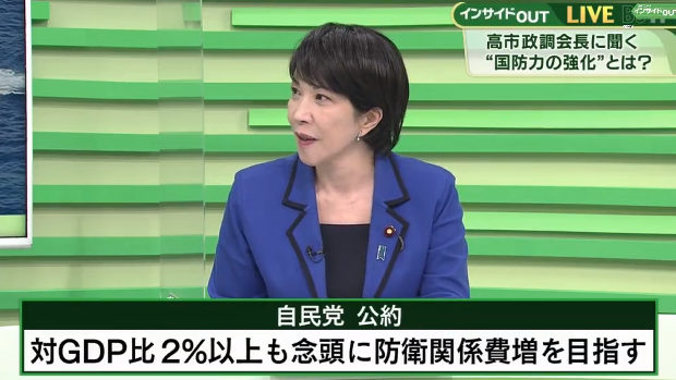 自民・高市早苗「(対GDP比1%)5兆円ではもう日本を守れない。命に関わる問題です。」