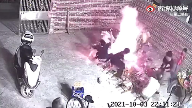 【動画】中国、外でバーベキューパーティーやっていたら自製焼き炉が突然、爆発~!