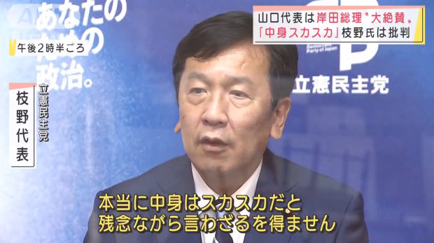 立憲・枝野代表「岸田総理の所信表明、中身スカスカ、圧倒的に私どもの方が具体策を持っている」