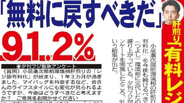 【レジ袋有料化】夕刊フジ緊急アンケ「無料に戻すべき=91.2%」岸田総理、聞いてますか?