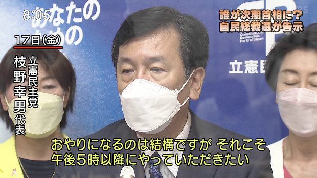 立憲・枝野「自民総裁選、午後5時以降にやって」⇒ 立憲「代表選が始まりました。本日13時から」