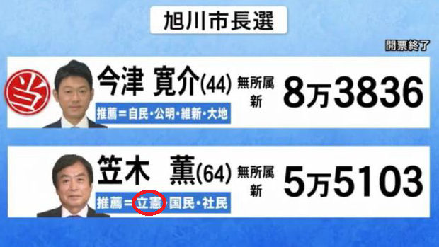 いじめ事件解決を投げ出し立憲から衆院選出馬のため市長辞職 ⇒ 旭川市長選挙 ⇒ 立憲推薦候補が惨敗