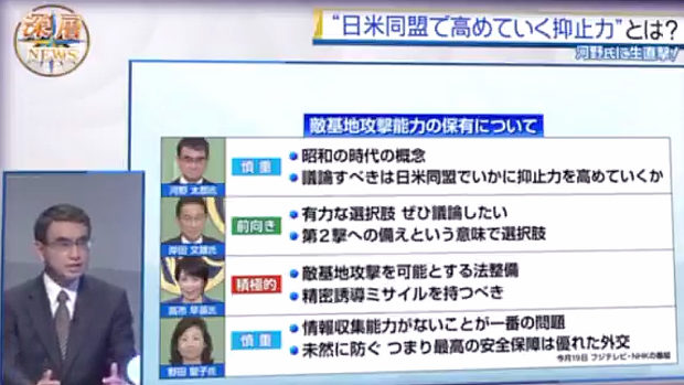 「日米同盟で高めていく抑止力とは具体的に? 」河野太郎「撃てばより痛い思いをするという抑止力」