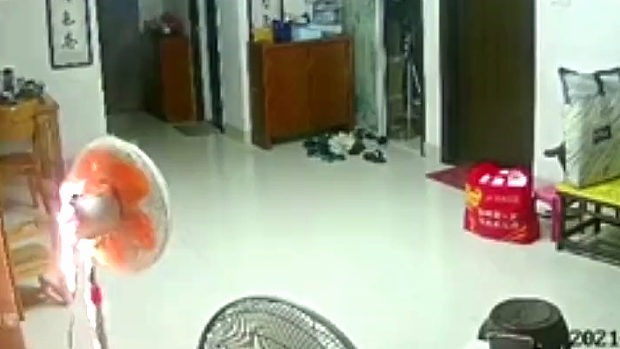 【動画】中国、動いていた扇風機が突然停止して…、すると、今度は火噴いて炎上~!