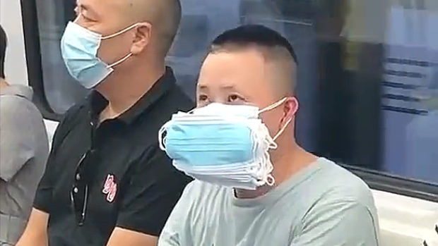 【動画】中国、地下鉄ですごい重ねマスクの乗客を発見!これはヤバすぎるぅ~!w
