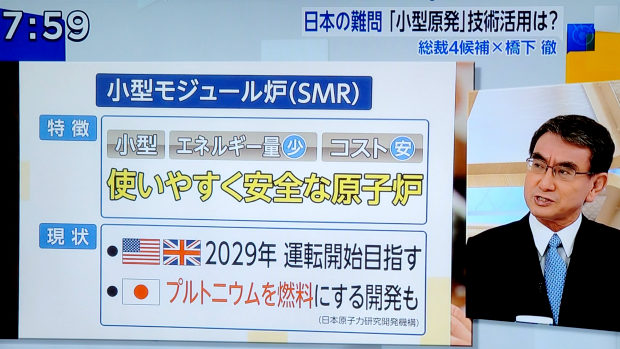 河野太郎「小型原発は消えゆく産業の最後のあがき」← 産業従事者への敬意の欠片もない総理候補