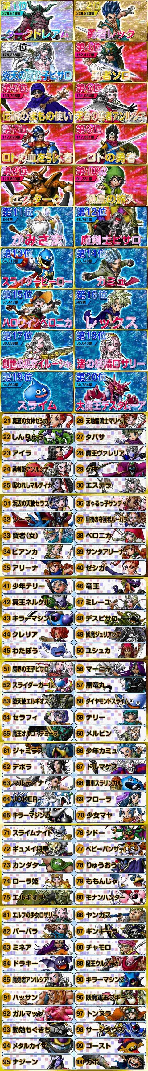 『ドラゴンクエスト』公式人気投票の結果がこちらwww